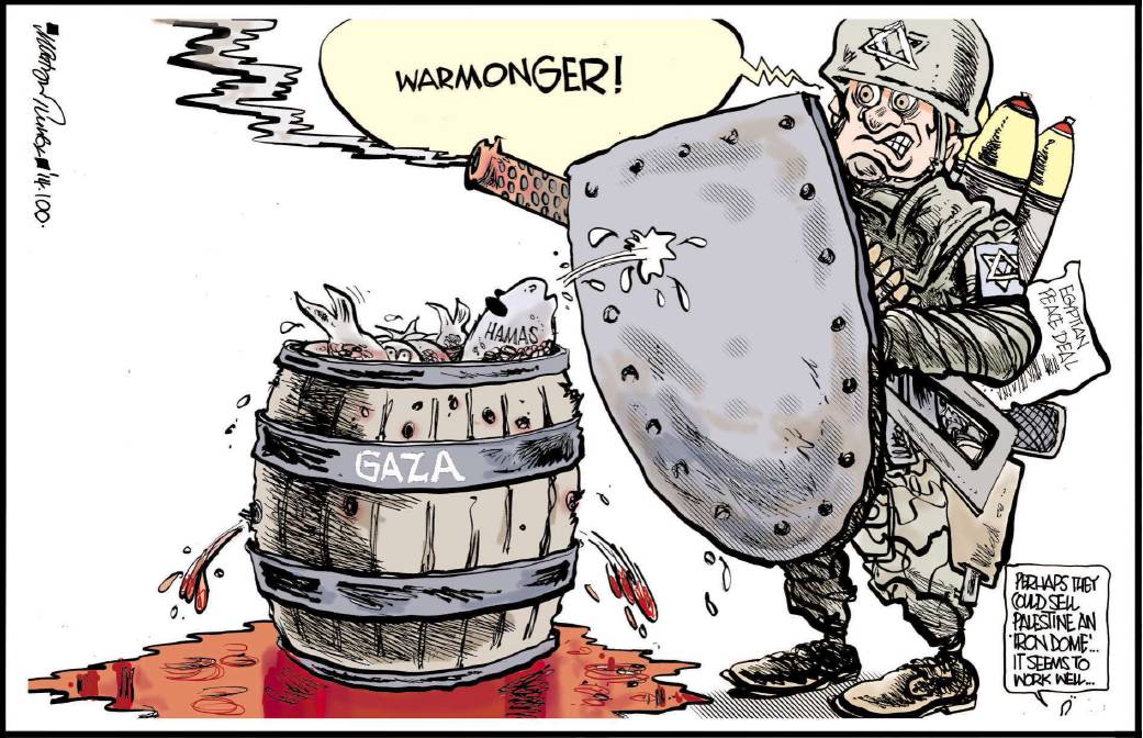 Martyn Turner above has Hamas merely "spitting" at Israel.