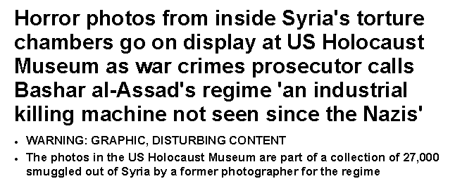 A typical headline from 2014 during the Syrian civil war, as Assad tortured and killed 100,000 or more.