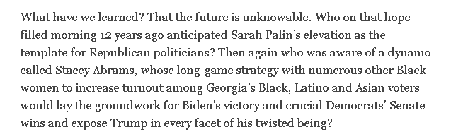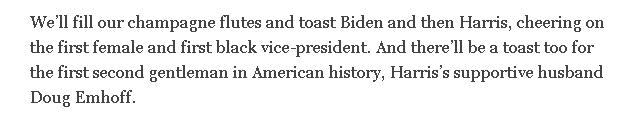 Kathy Sheridan, The Irish Times, 20 Jan 2021, p.10 (one page after the above), celebrates that there was no female vice-president in Jan 2009.