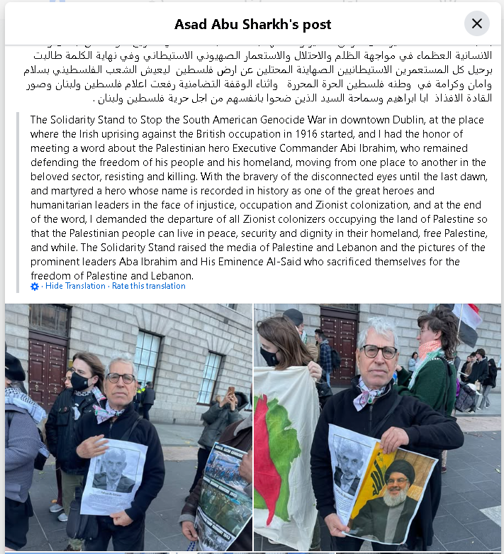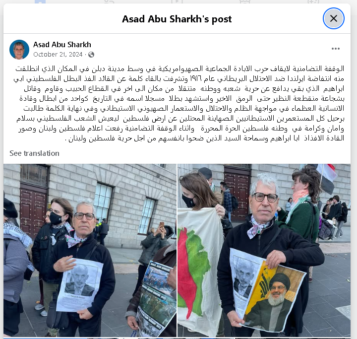 In 2024, he gave a speech in Dublin praising Yahya Sinwar, leader of Hamas.