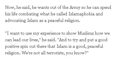 Naser Abdo, a Muslim soldier in the U.S. military, tells ABC News in 2010 that he wants out of the Army "so he can spend his life combating what he called Islamaphobia and advocating Islam as a peaceful religion."