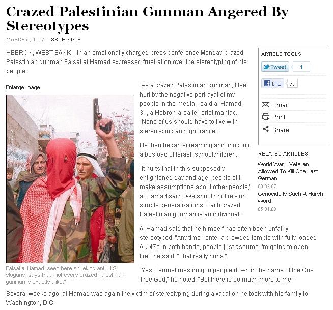 "Crazed Palestinian Gunman Angered By Stereotypes".