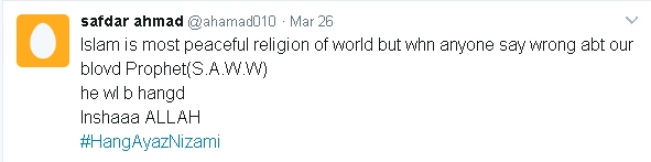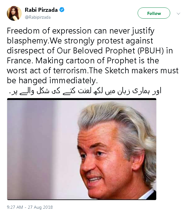 Aug 2018: Rabi Pirzada (yes the same person) calls for those who blaspheme against Islam to be executed.