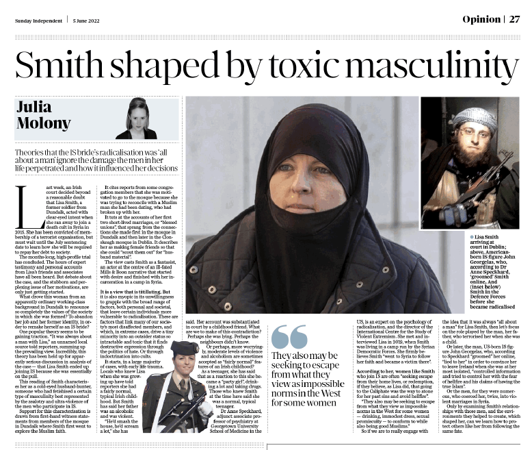 "How Lisa Smith was shaped by toxic masculinity", Julia Molony, Sunday Independent, 5 June 2022.