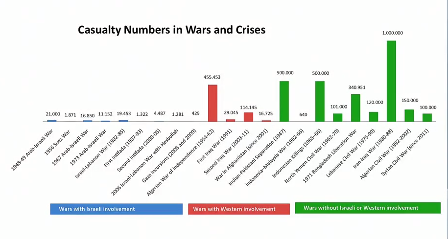 List of wars by death toll shows how small Israel's wars are on a global scale.