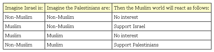 Imagine Israel is: Imagine the Palestinians are: Then the Muslim world will react as follows: