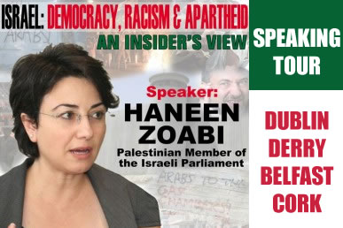 The radical Israeli-Arab politician Haneen Zoabi comes to Ireland, Aug 2012, to pander to Irish prejudices against Israel.
