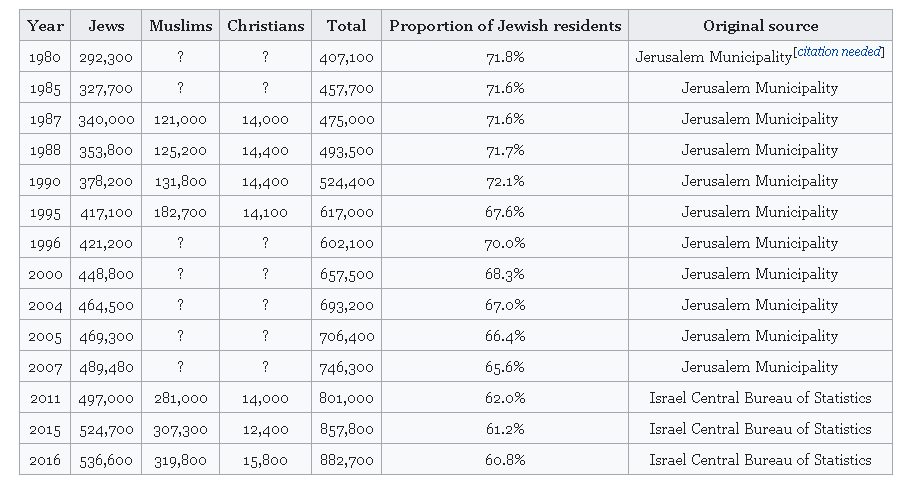 Despite decades of Israeli "occupation", "land grab" and "slow genocide", the Arab population of Jerusalem grows steadily.