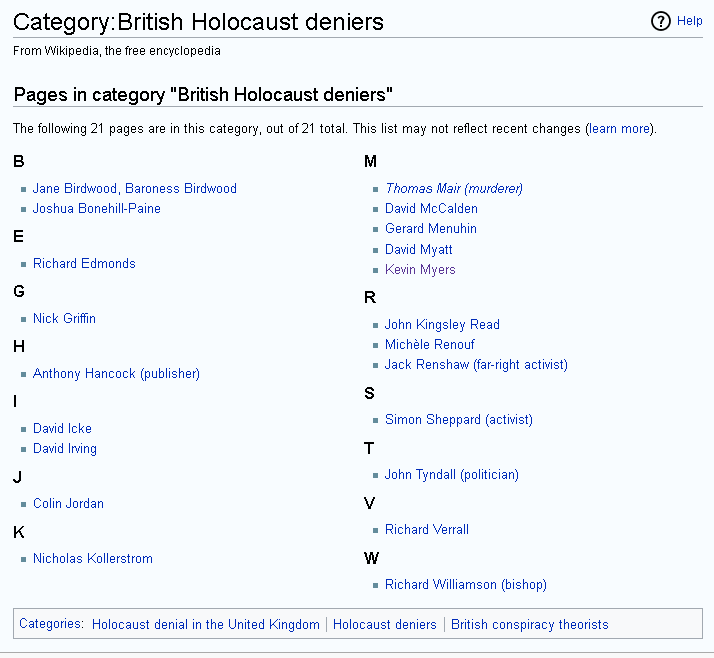 Wikipedia for a time after the 2017 controversy comically listed Myers under "Holocaust deniers".
