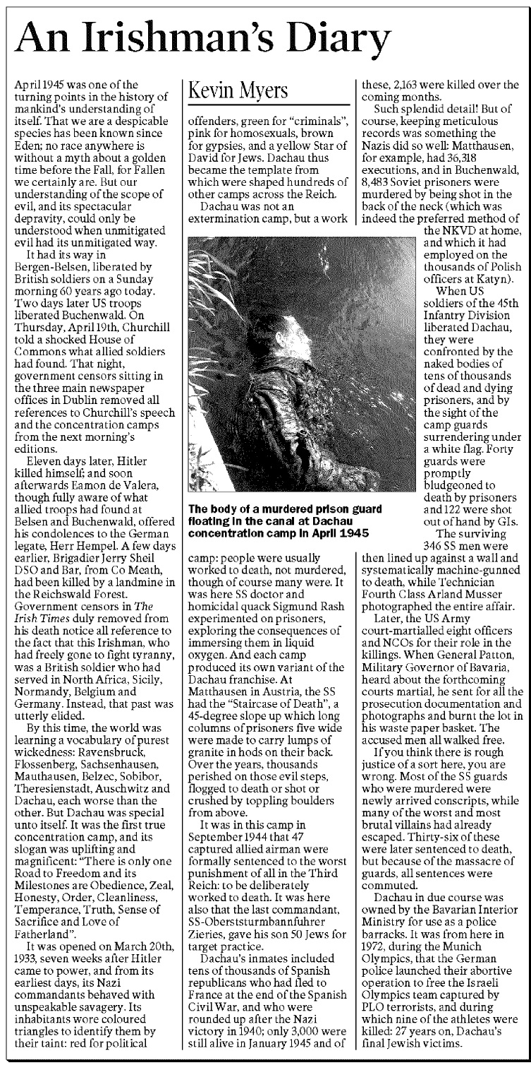 Kevin Myers has for decades been writing excellent columns about Israel, anti-semitism, WW2, the Nazis and the Holocaust.