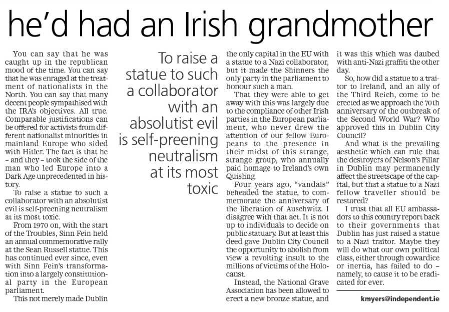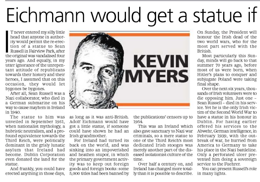Excellent Kevin Myers column on the IRA's support for the Nazis.