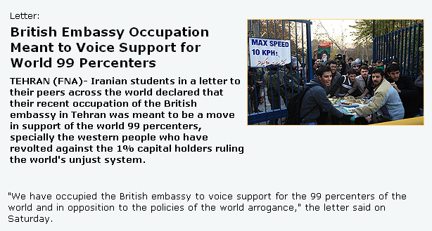 The Jew-hating tyranny of Iran, the world's no.1 terrorist state, declares its solidarity with the Occupy movement. Makes sense.