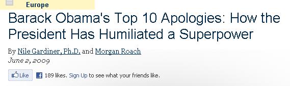 The Heritage Foundation gives us a rundown of Obama's apologies for America.