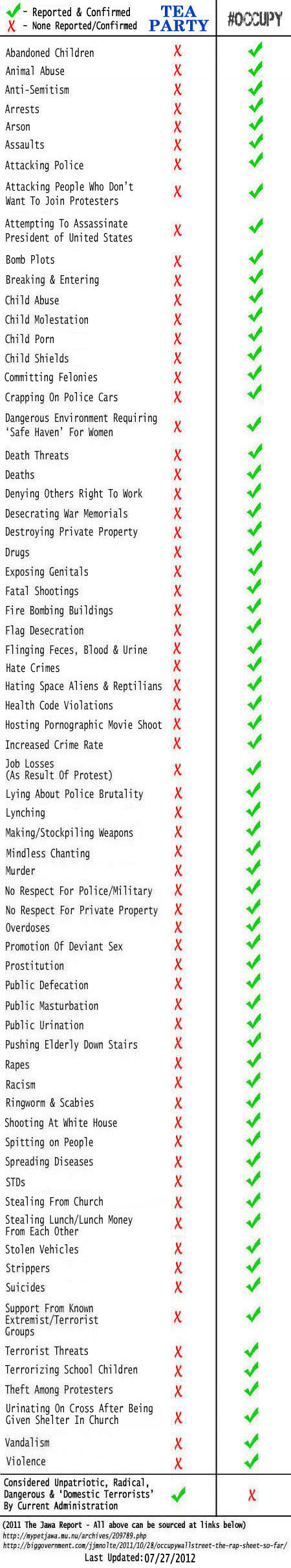The Occupy Wall Street protests compared to the Tea Party protests that Lara Marlowe hates.