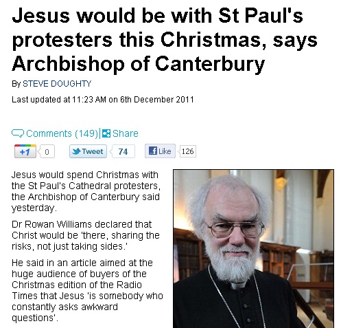 Many leftie clerics like Rowan Williams have been supporting the Occupy movement, and letting them block and use (desecrate) their churches.