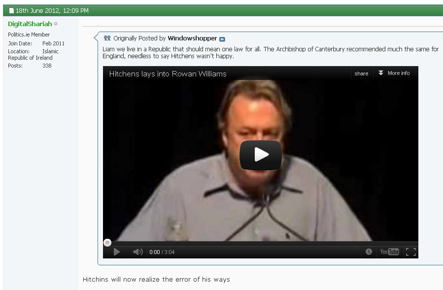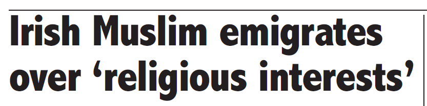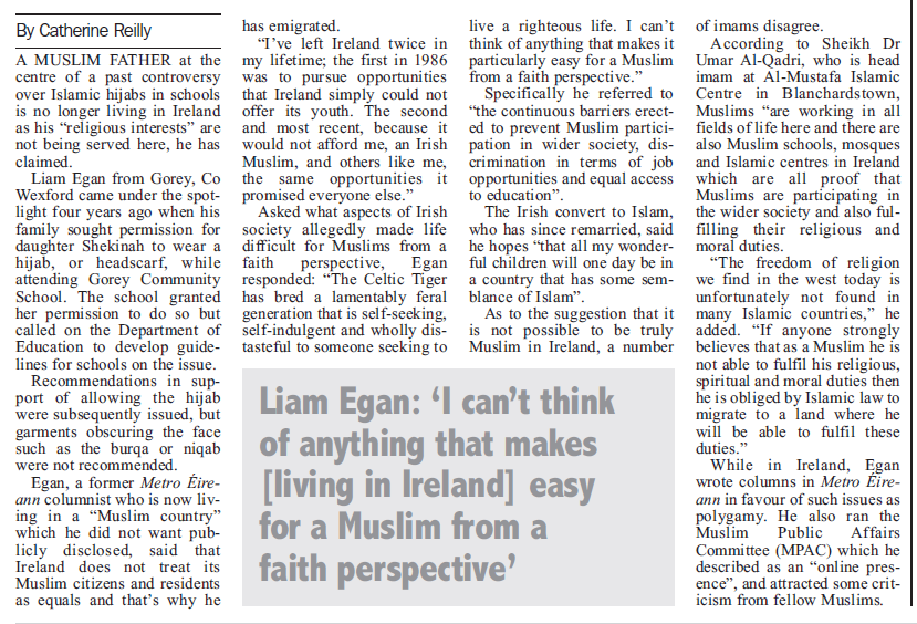 The only downside is he plans to keep rabbitting on about sharia in Ireland from abroad. But at least he's gone. That's the main thing. If only all Islamists would leave Ireland.