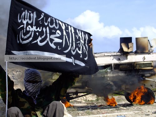 Al-Shabaab terrorists ("Al Qaeda in East Africa") hold the same black flag of jihad, as they slaughter and oppress Somalis.