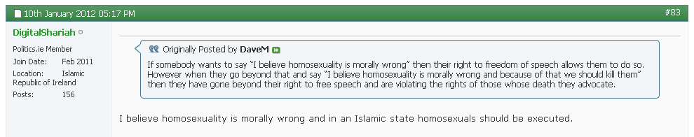 EireMuslim openly supports killing gays, 10 Jan 2012.
