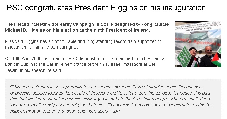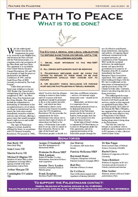"The undersigned also urge all citizens of Ireland to support a boycott of all Israeli goods and services".