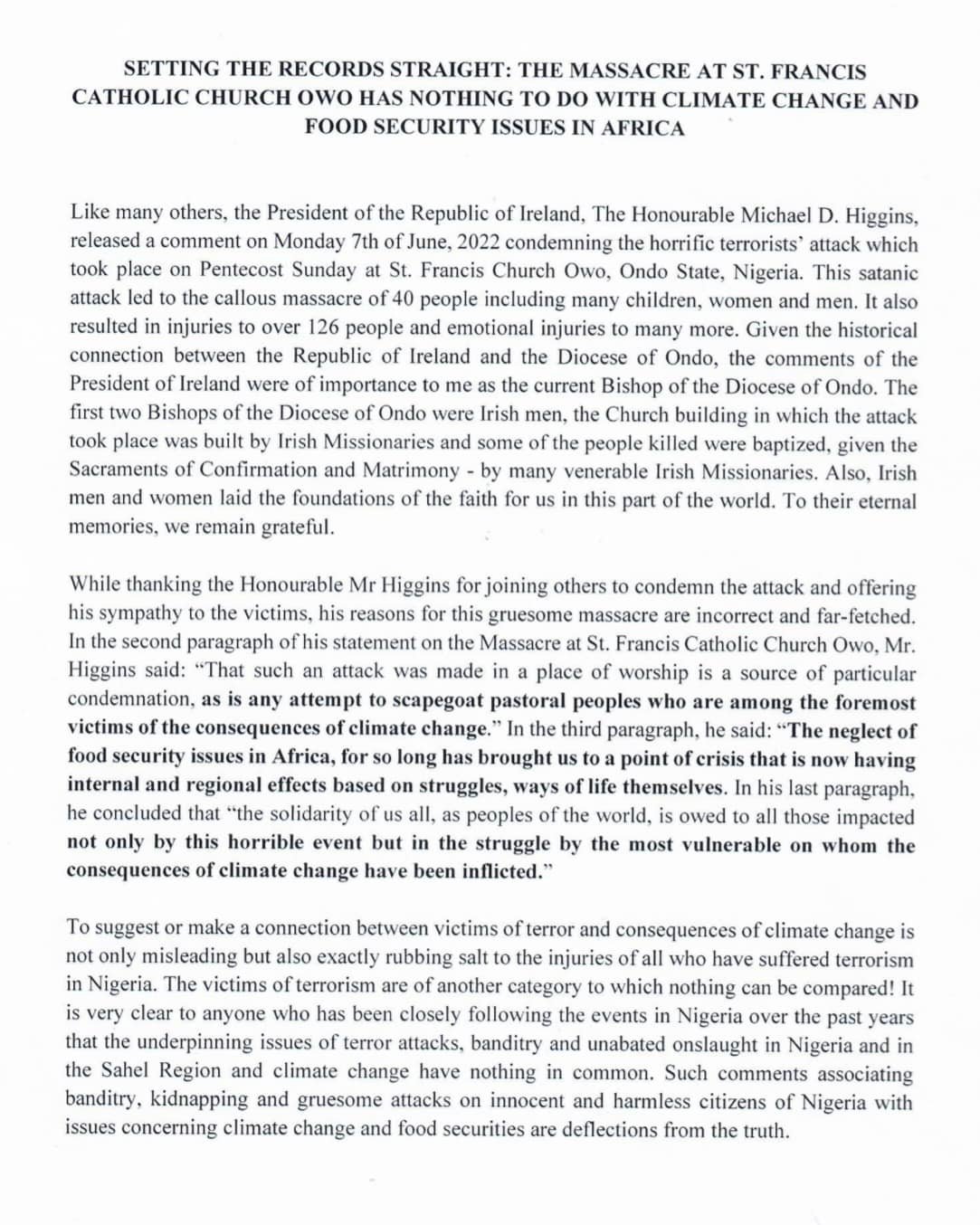 Owo church massacre in Nigeria, in which 40 Christians were murdered at Mass by Muslims.