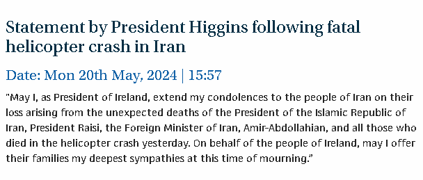 offers condolences following the death of President Raisi of Iran, May 2024.