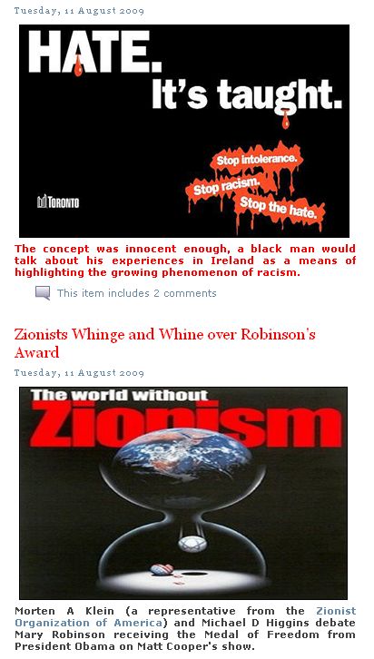 Irony: Two items side-by-side on MPAC Ireland's front page, Aug 2009.