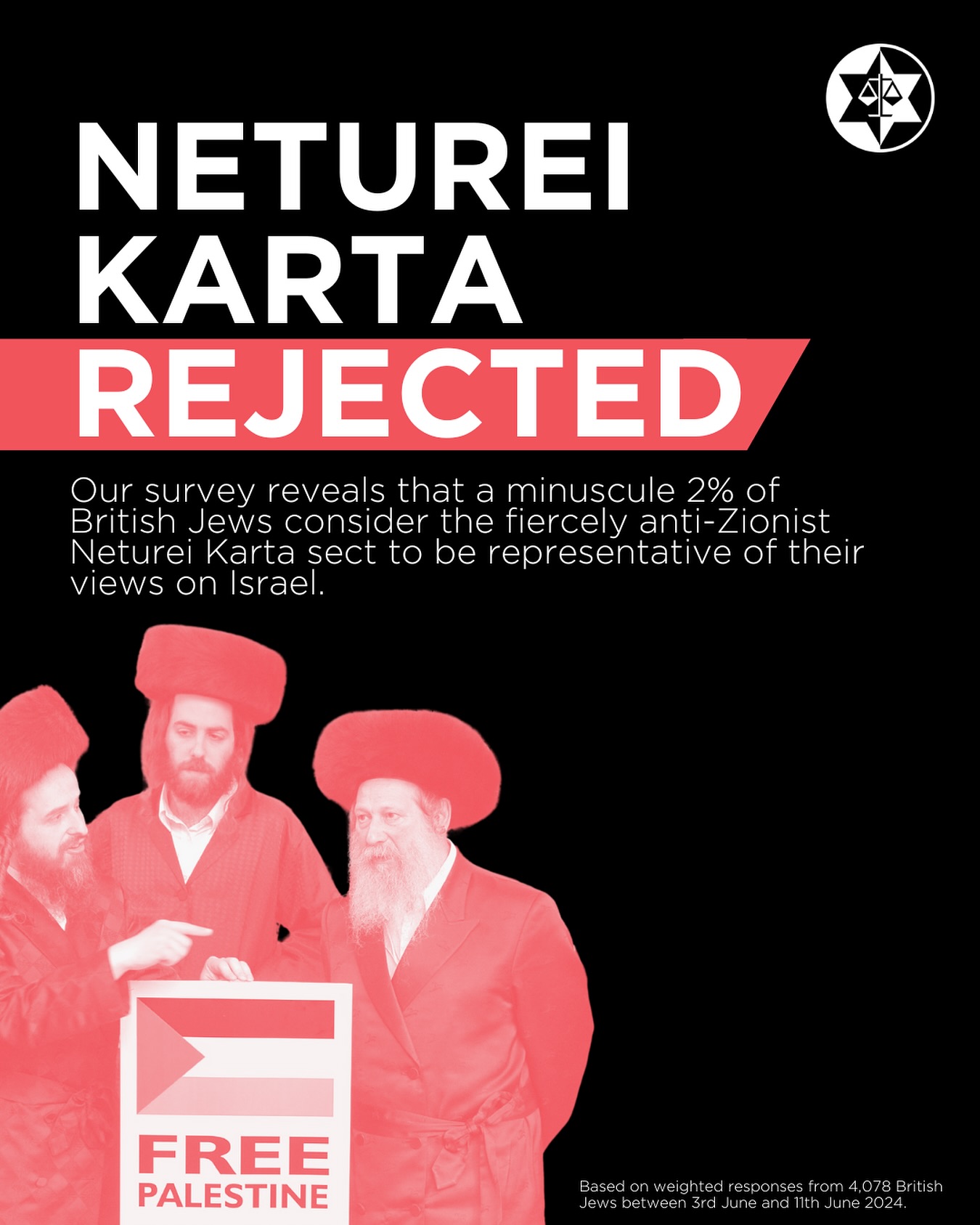 A minuscule 2% of British Jews consider Neturei Karta sect to be representative of their views on Israel.
