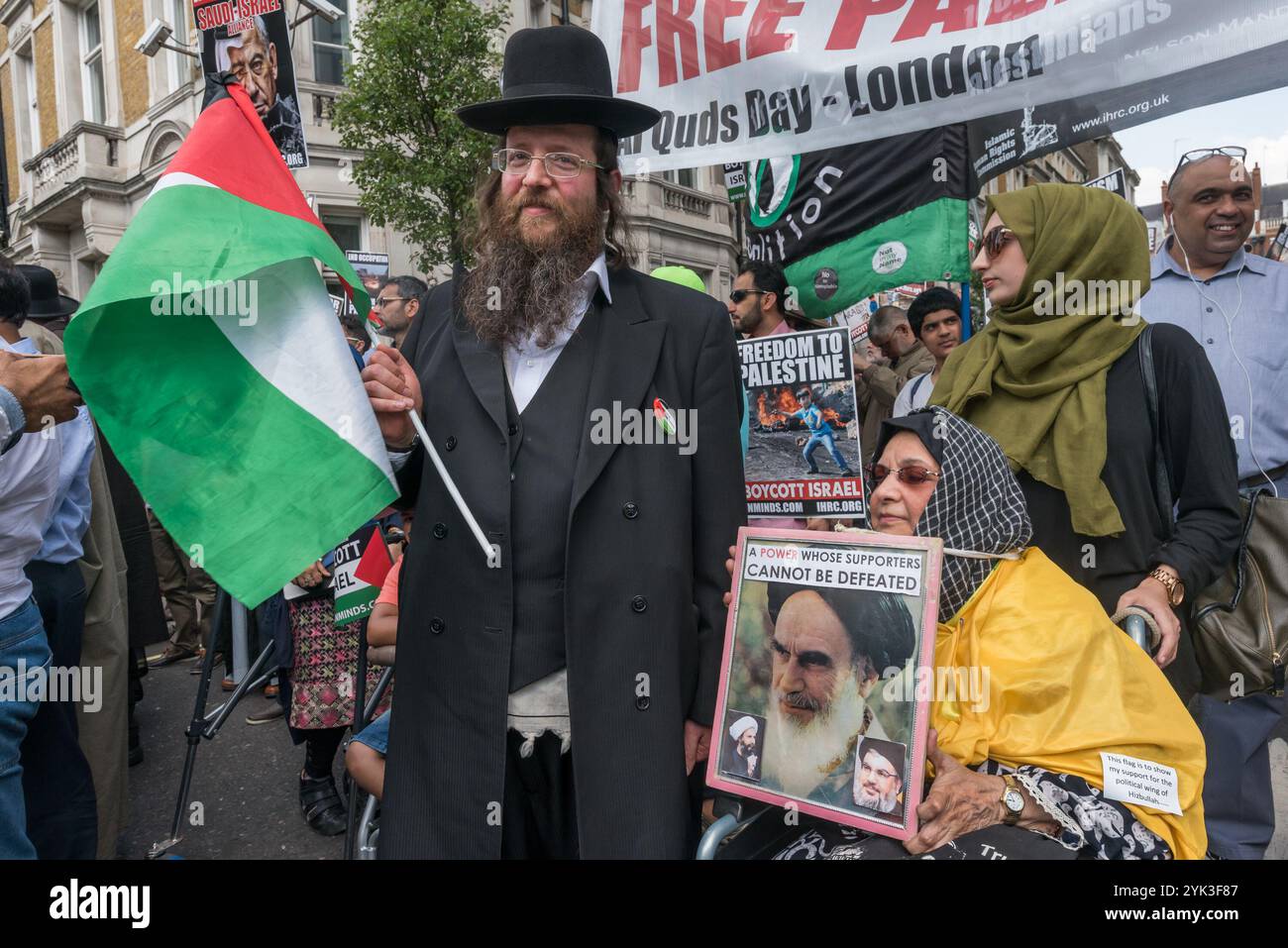 Neturei Karta scum march with Ayatollah Khomeini posters in London in 2017.