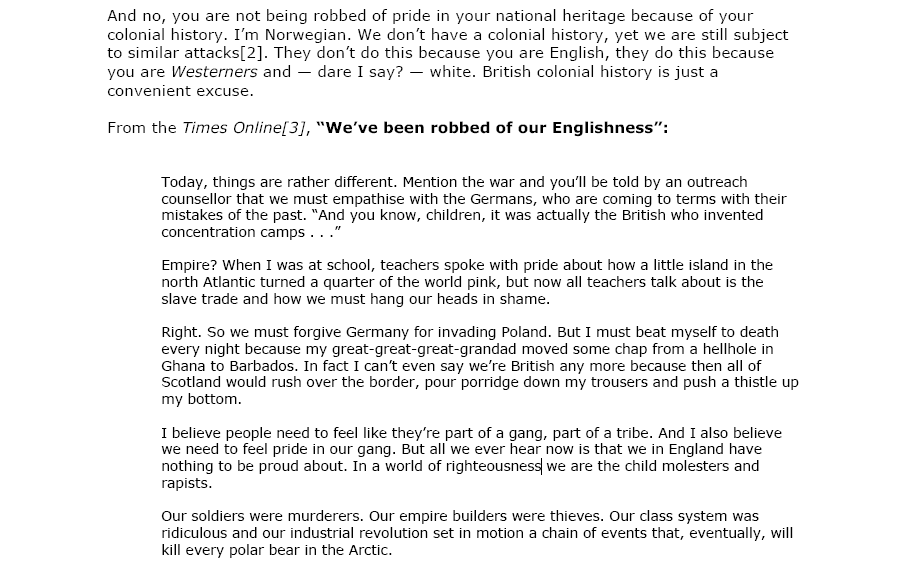 "Gule is thuggishly trying to silence (rather than refute) a point of view with which he disagrees by demonizing it. The problem is that he is using an argument that can be used against him, and anyone. I expect that Gule criticizes American and NATO foreign policy. Yet there have been numerous terror attacks committed by people who oppose that foreign policy. Is Gule partly responsible for creating an intellectual climate and line of thought that led such people to commit terror attacks?
