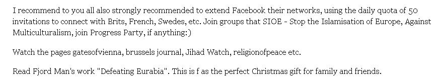 Breivik praises all sorts of peaceful anti-jihad sites, that never call for violence,