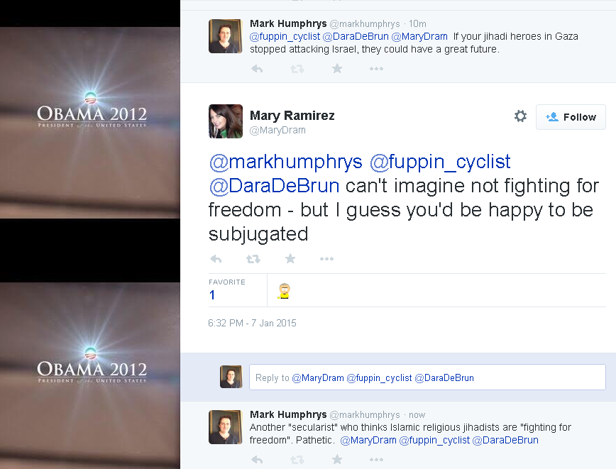 A self-described "secularist" in Jan 2015 who thinks jihadis are fighting for a kuffar concept called "freedom".