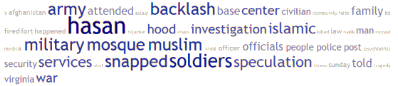 Gates of Vienna extracts a "word cloud" from the text of Fort Hood news stories in the media.