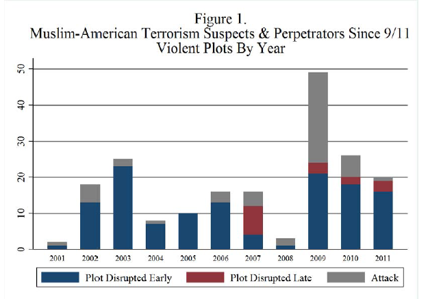 From "Muslim-American Terrorism in the decade since 9/11", report, Feb 2012, from Triangle Center on Terrorism and Homeland Security.