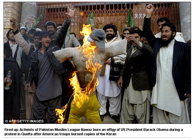 Crazed Islamic mobs burnt Obama in effigy during the Innocence of Muslims riots in Sept 2012.