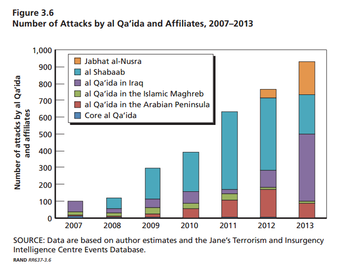 Chart from The Economist, 18 Nov 2015, shows how Obama has completely ruined the war on terrorism.