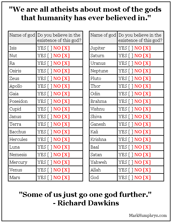 points out that everyone is an atheist about other gods and other religions.