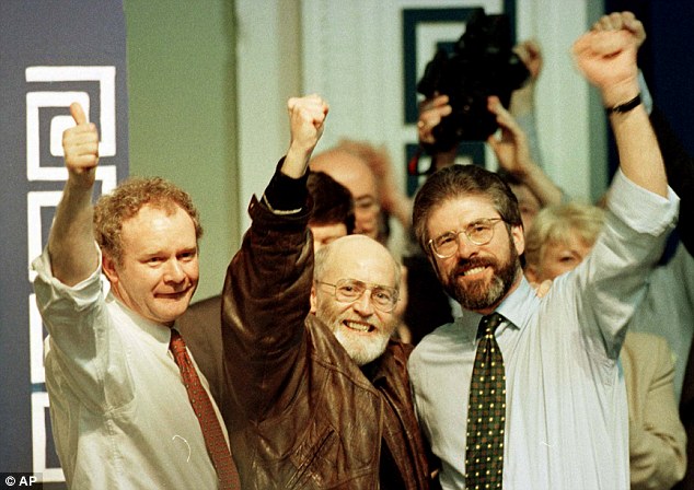 Irish terrorist leaders Martin McGuinness and Gerry Adams celebrate the killer of Ross McWhirter, Balcombe Street gang member Hugh Doherty.