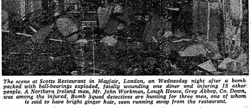 Here there was no warning. They threw a bomb into a crowded London restaurant and ran away, killing one.