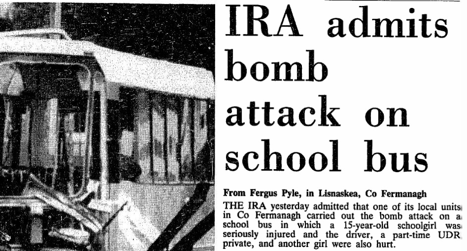 The IRA bombs a school bus in 1988.