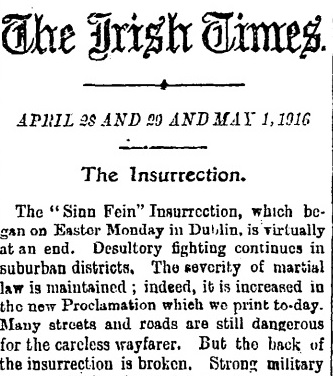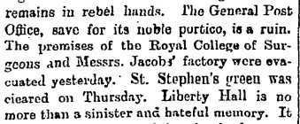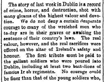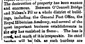 The Irish Times, horrified by the destruction of the Easter Rising, 28 Apr 1916.