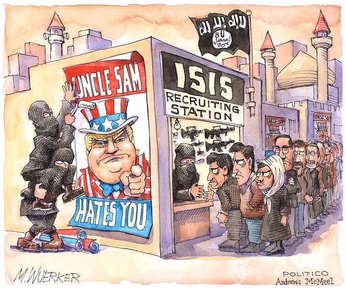 The left's idiocy is illustrated by this cartoon by Matt Wuerker, Jan 2017. From politico.com.