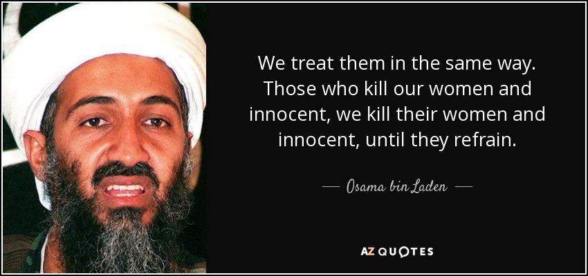 The cold-blooded jihadi butcher of women and children, Osama Bin Laden, packs so many lies into one sentence: