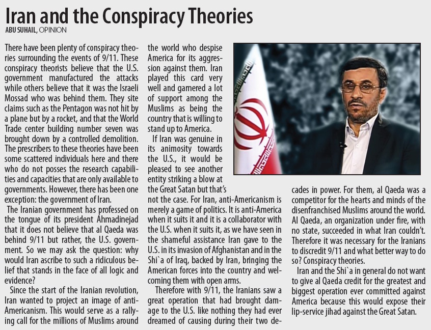 Al Qaeda gets angry with Iran for spreading 9/11 conspiracy theories.