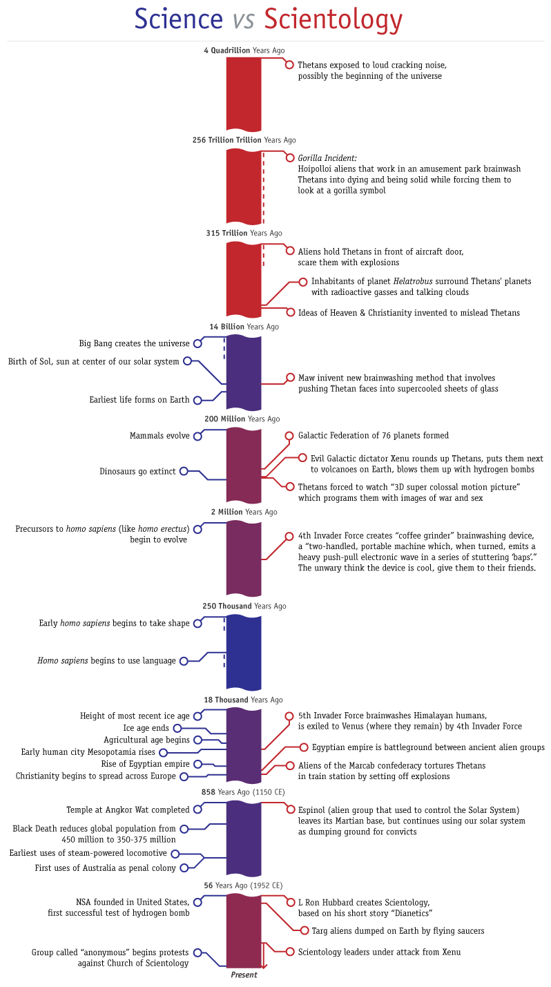 Timeline of Scientology's "history" of the universe.