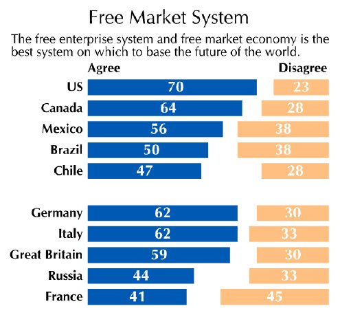 This survey provides grounds for optimism about the developing world. For instance, with 66 percent support for the free market, China's future looks bright. They adopted some of the West's worst ideas in the 20th century (socialism and totalitarianism). Let's hope they're going to adopt the West's best ideas in the 21st century (capitalism and democracy).