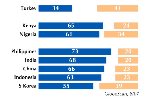 Opinion survey, Apr 2008, shows that most people, both in the West and in the third world, agree with me, not with leftists like Naomi Klein.