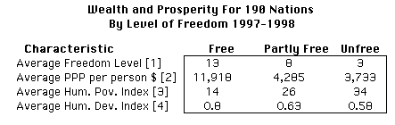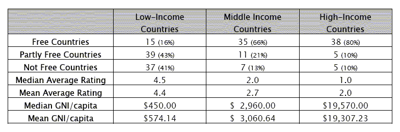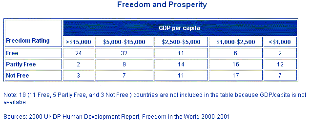 The correlation between lack of political freedom and poverty. Freedom House, 2001.