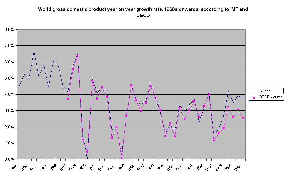 Gross world product, 1900-2000 (in trillions of 1990 dollars). It keeps increasing.
