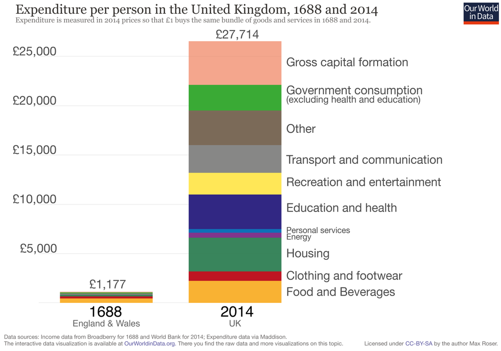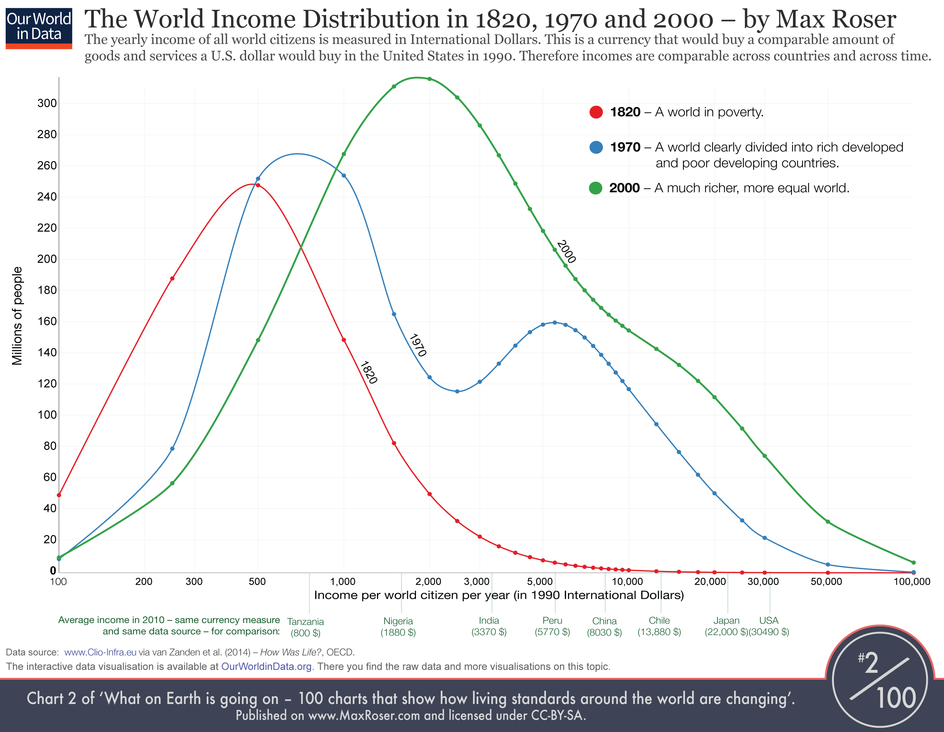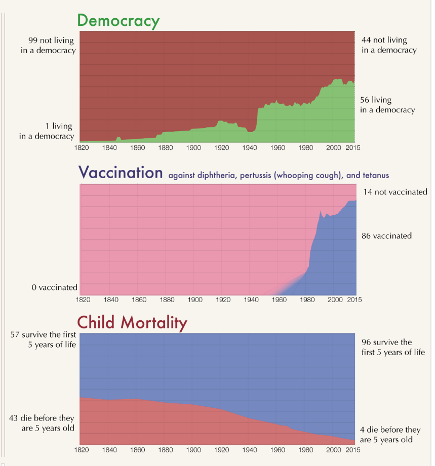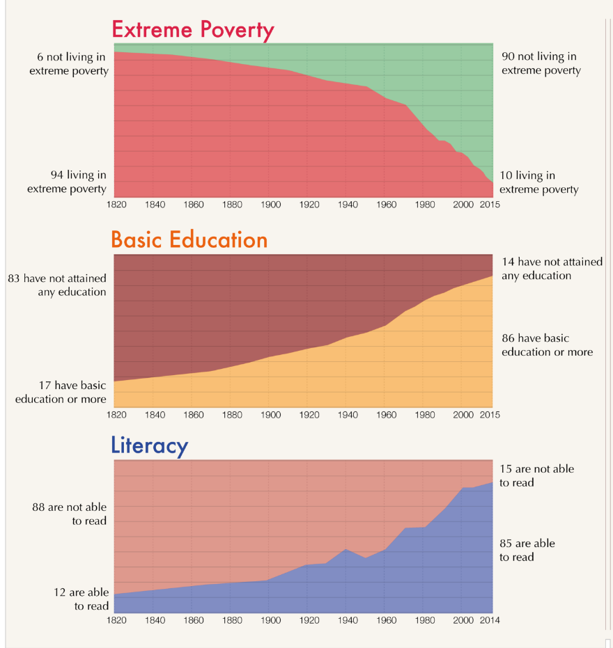 Hans Rosling illustrates the incredible improvement in world wealth (and health) since 1800.