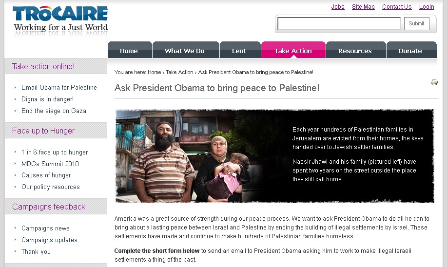 fund the church's anti-Israel, anti-American charity Trocaire.